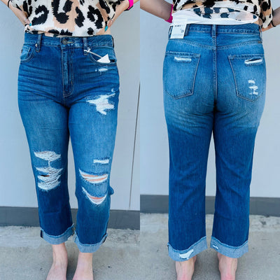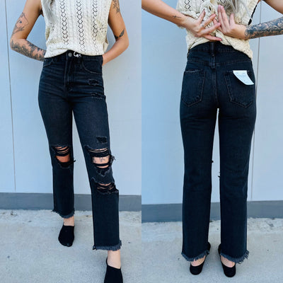 Vintage Black Super High Rise Distressed Straight Crop Jeans