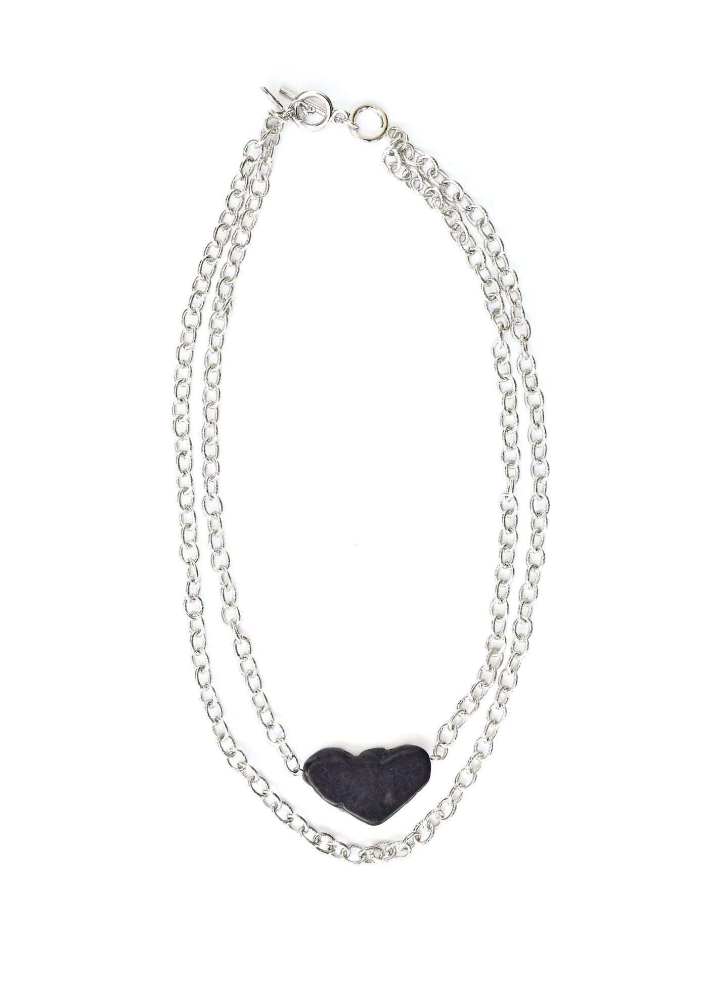 2 Burnished Silver Chain Necklace with Black Chunk Stone
