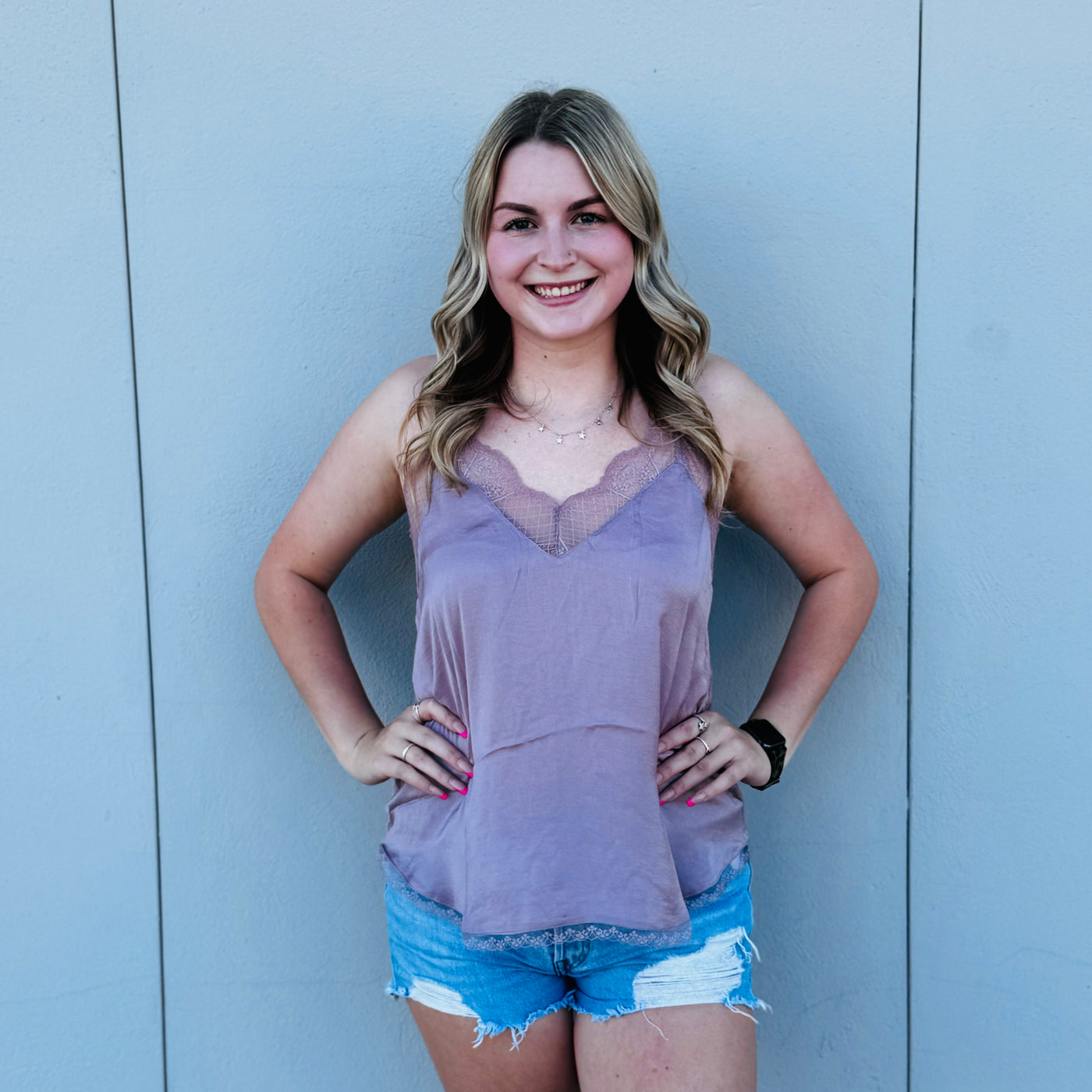 Mauve Lace Trim Sleeveless Top