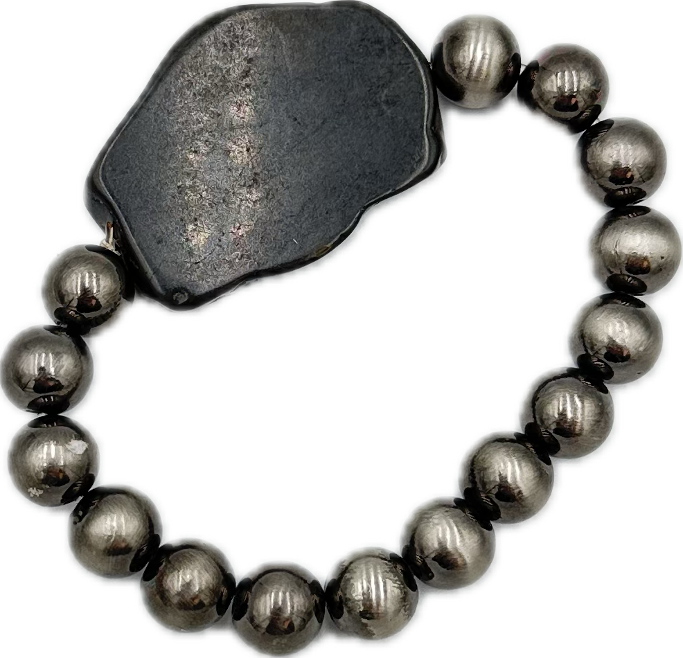 Silver Bracelet with Black Chunk Stone